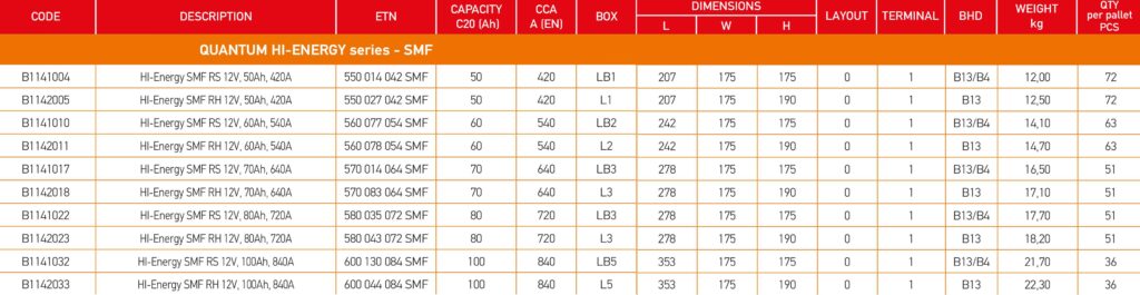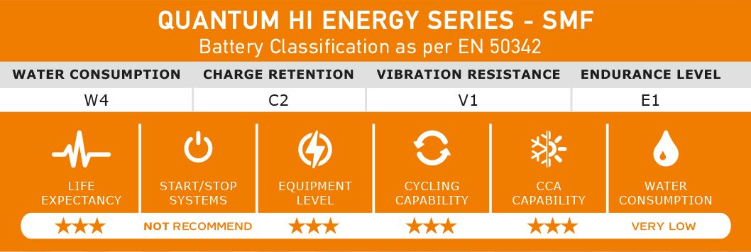 Κλειστού τύπου (SMF), χωρίς συντήρηση και αδιάβροχη μπαταρία, που προσφέρει μεγάλη ισχύ και αντοχή για οχήματα με τον πιο πρόσφατο εξοπλισμό και υψηλές απαιτήσεις σε ηλεκτρική ενέργεια. Η βελτιωμένη κατασκευή πλακών προσφέρει υψηλή ισχύ εκκίνησης και αντοχή κατάλληλη για όλες τις κατηγορίες ελαφρών οχημάτων.
